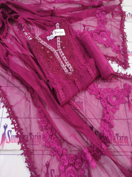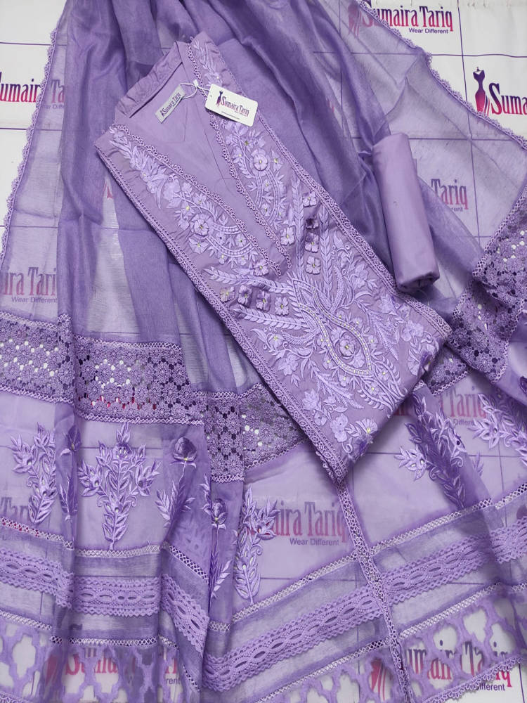 Be the first to review “3D Cutwork Cotton Lawn – Lilac purple 3 Piece Semi-Stitched Suit” Cancel reply