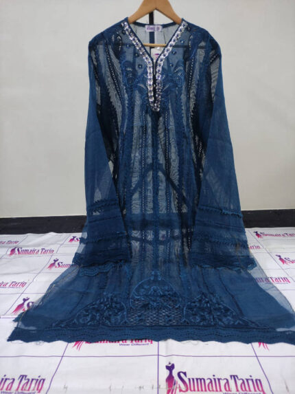 VELVIBES – Ocean blue 3 Piece Semi Stitched Suit