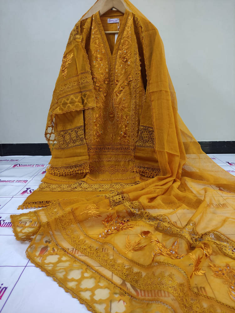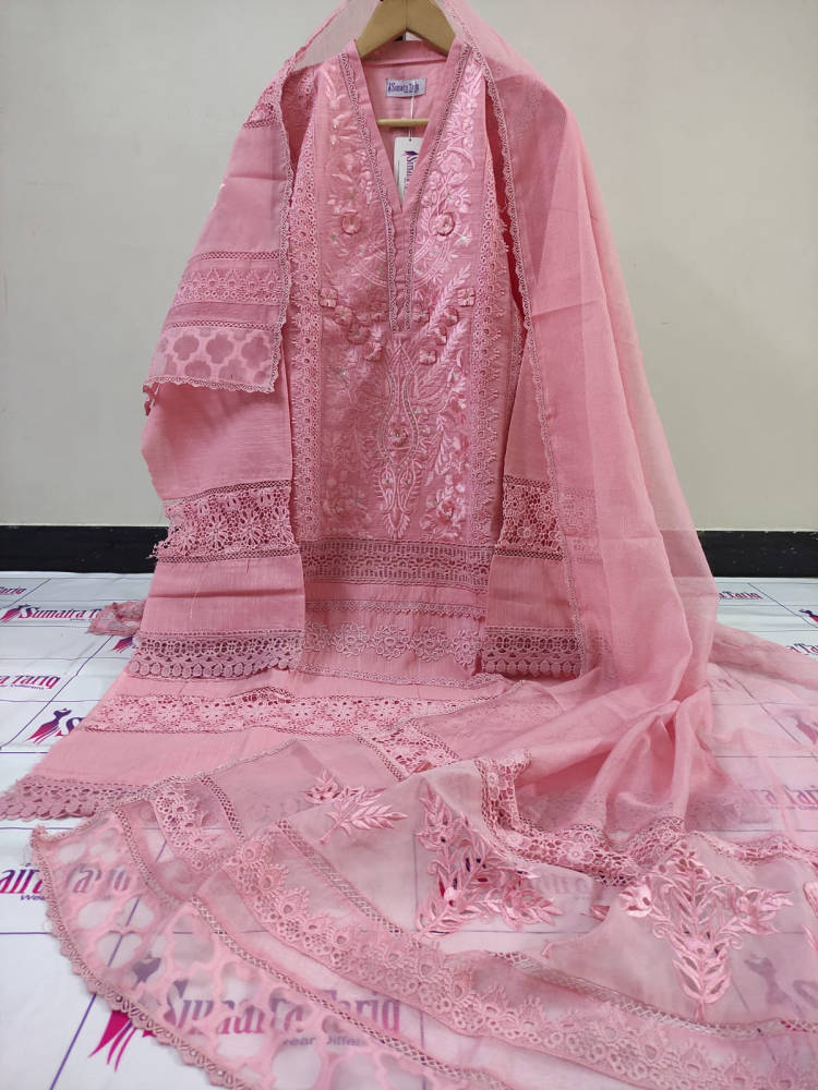 Slub Khaddar semi-stitched shirt beautifully embellished with Resham work and 3D embroidery.