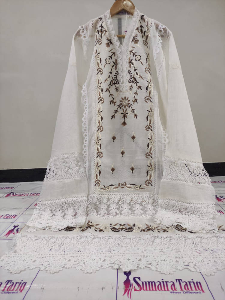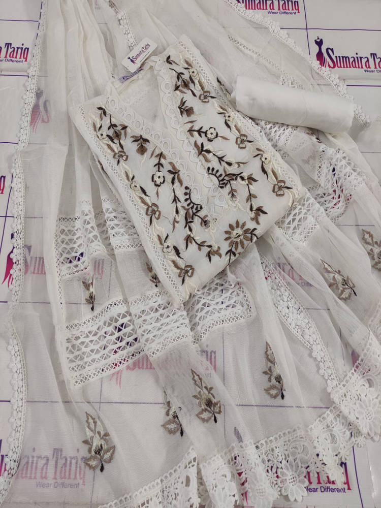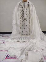 CHAMBELI is an elegant and graceful 3-piece semi-stitched outfit crafted from premium Khaadinet fabric. This suit features beautiful Resham and 3D embroidery, giving it a classy and festive look.