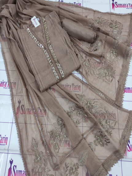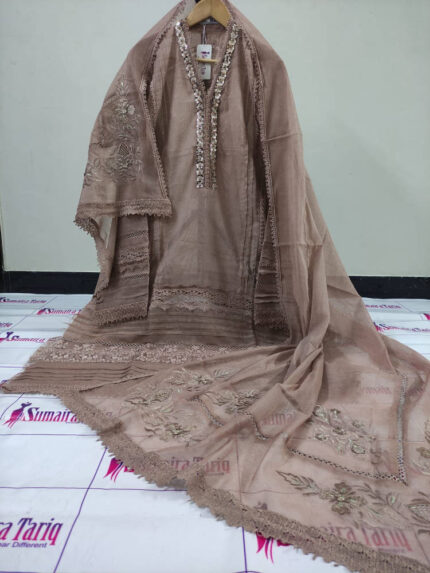 CHANDNI – Coffee beige 3 Piece Semi Stitched