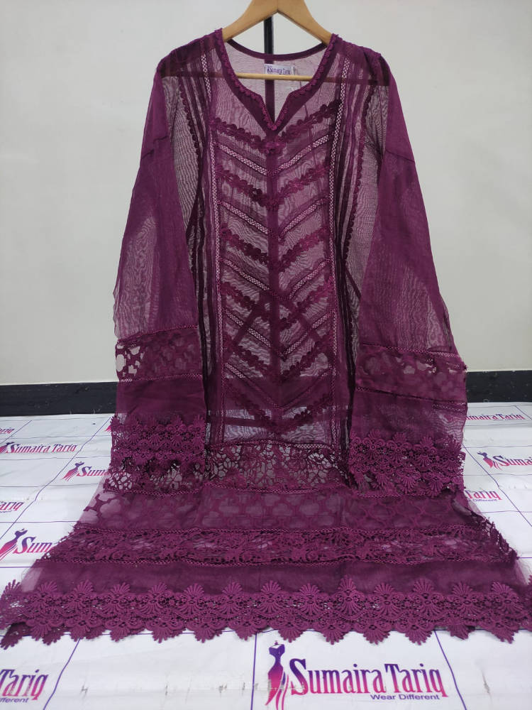 Turkish Lawn – Fuchsia pink 3 piece Semi Stitched