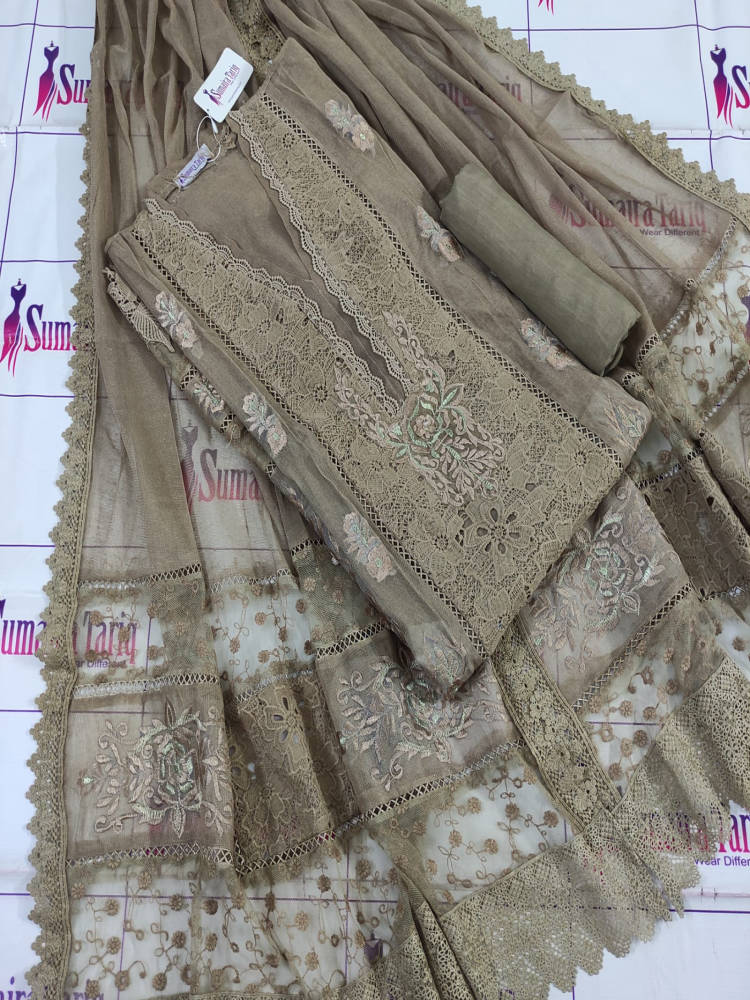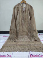 SHAHI JORA – Coffee beige 3 Piece Semi Stitched Suit