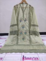 Premium Turkish Lawn semi stitched 3 piece suit with Resham & 3D embroidery, elegant khadinet dupatta and matching trouser. Perfect for festive & summer wear.
