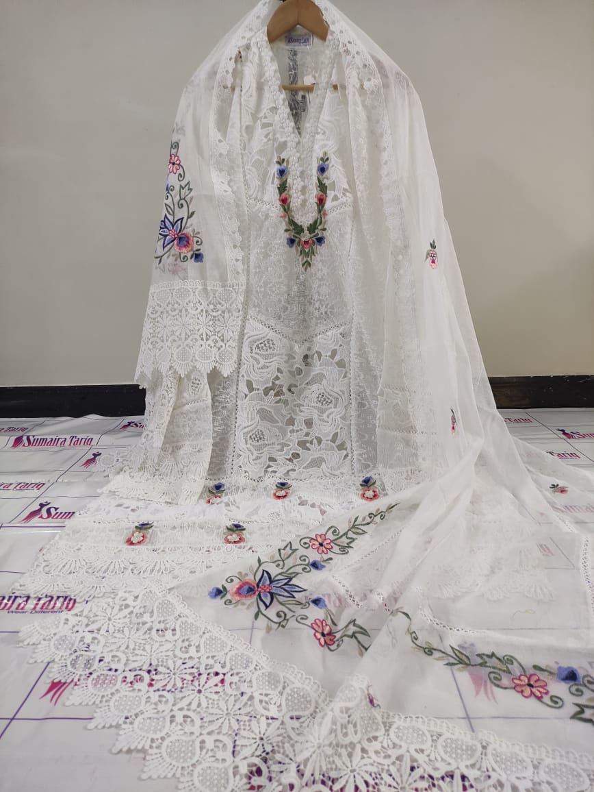 Elegant 3 Piece Semi Stitched Suit Premium Khaadinet Fabric Resham Embroidery with Cutwork Free Size (Small to XXL) Cash on Delivery Available