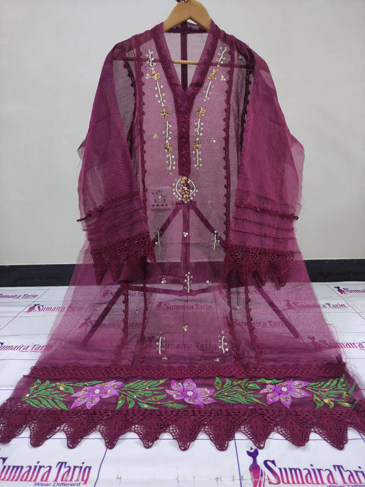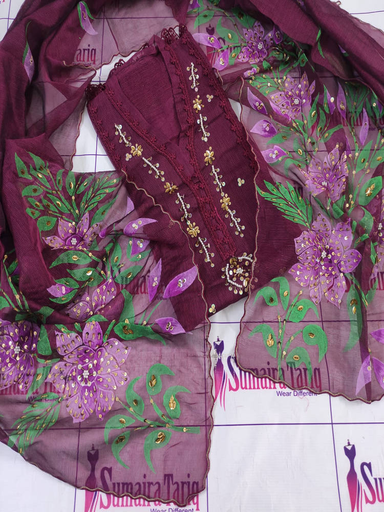 Florence Silk Applique – 3 Piece Suit (semi-stitched)