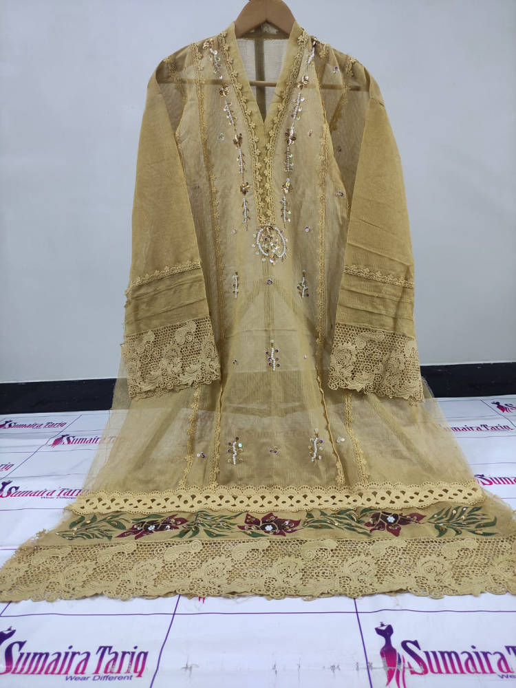 Elegant 3 Piece Semi Stitched Suit Premium Khaadinet Fabric Resham Embroidery with Cutwork Free Size (Small to XXL) Cash on Delivery Available