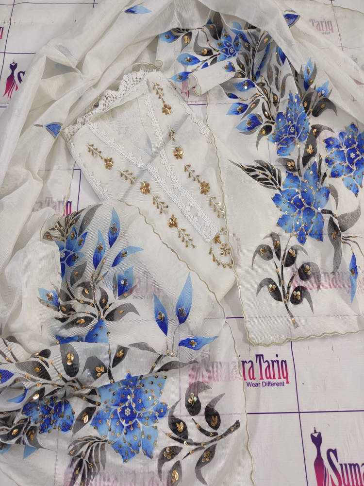 RANGRASIYA – White 2 Piece Semi Stitched Suit