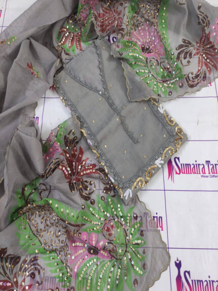 • Fabric: Khaadinet • Shirt Length: 47 inches • Dupatta: 2.75 yards (Ready to Wear) • Trouser: Unstitched Raw Silk • Size: Semi Stitched (Small to XXL) • Cash on Delivery Available • Delivery: 5–6 Working Days