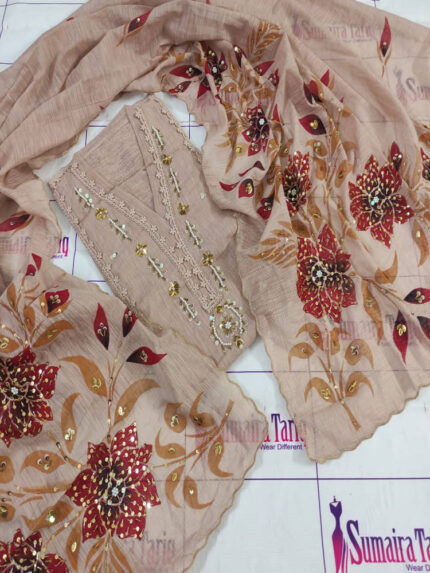 RANISA – Coffee beige 3 Piece Semi Stitched Suit ₨ 6,000