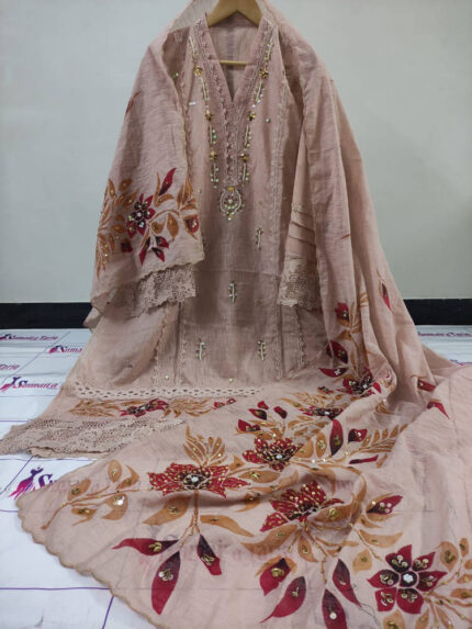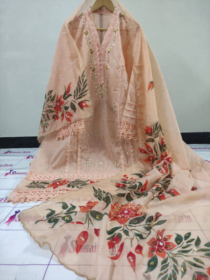RANGRASIYA – Blush peach 2 Piece Semi Stitched Suit