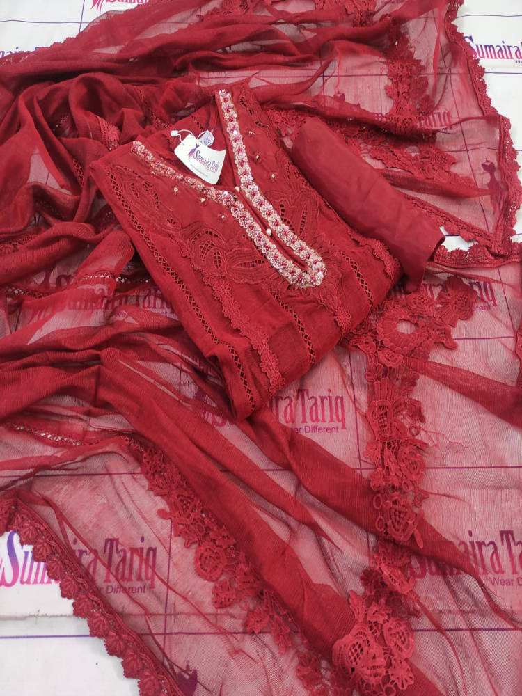 Be the first to review “RANISA – Deep red 3 Piece Semi Stitched Suit” Cancel reply