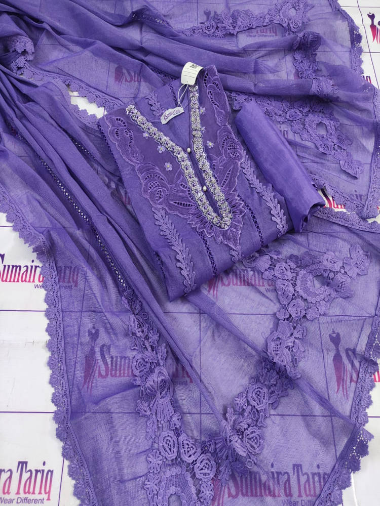 CHANDNI – Lilac purple 3 Piece Semi Stitched