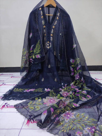RANISA – Ocean blue 3 Piece Semi Stitched Suit