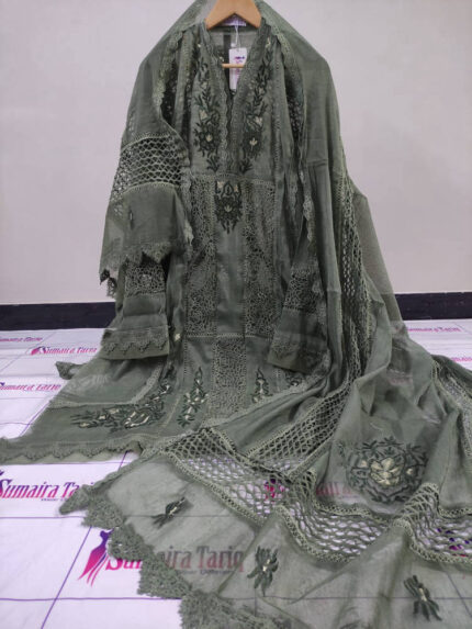 RANISA – Olive green 3 Piece Semi Stitched Suit ₨ 6,000