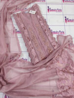 Elegant 2 piece unstitched outfit in Pink Mehrab color, crafted on premium Khaadi Net with luxurious 3D embroidery and detailed handwork.