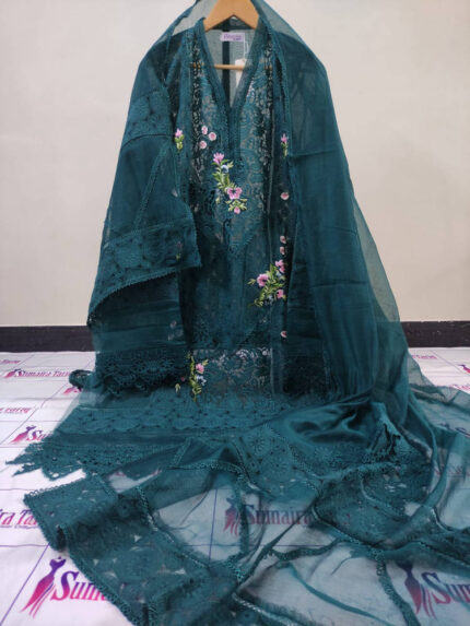 3D FESTIVE – Bottle green 2 Piece Semi Stitched Suit