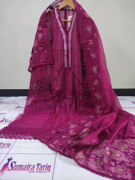 ZAREEN – Hot pink 3 Piece Semi Stitched Suit
