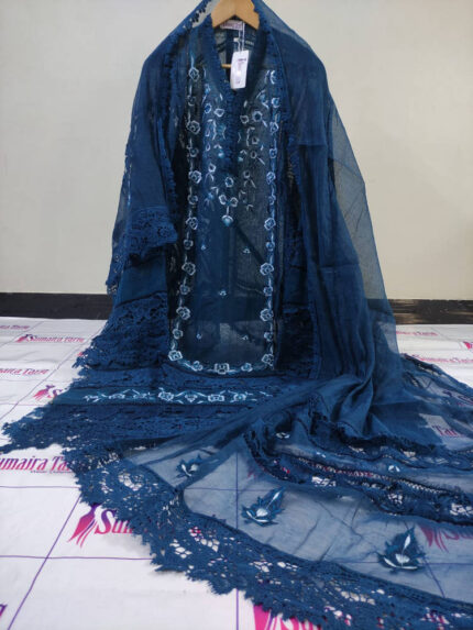 CHAMBELI – Peacock blue 3 Piece Embroidered Suit