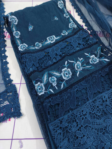 CHAMBELI – Ocean blue 3 Piece Embroidered Suit