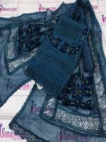 Premium 2 piece unstitched outfit in Teel Cage color, crafted on Khaadi Net with elegant 3D embroidery and detailed handwork.