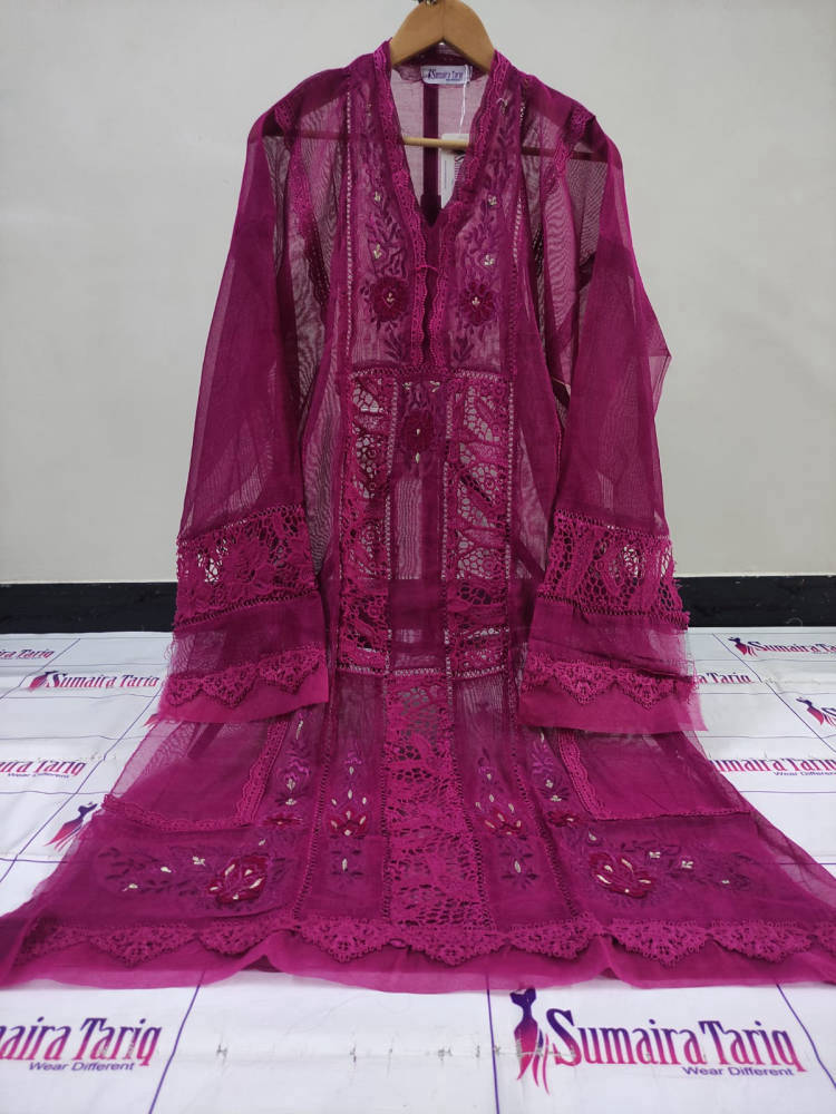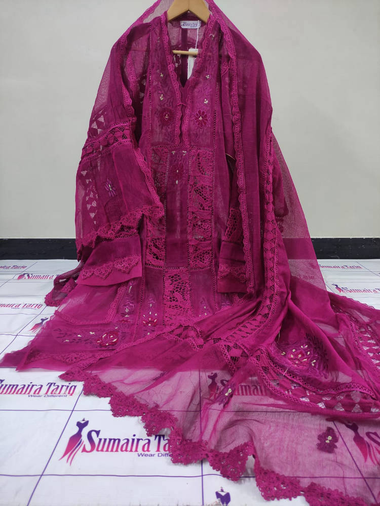 3 Piece Luxury Suit Semi Stitched Elegant silk applique & resham embroidery Cash on Delivery available