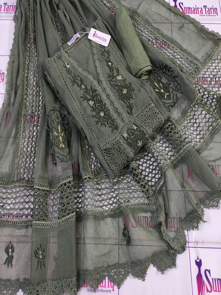 Be the first to review “VELVIBES – Olive green 3 Piece Semi Stitched Suit” Cancel reply