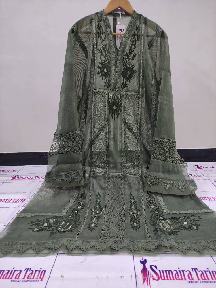 Elegant 3 Piece Semi Stitched Suit Premium Khaadinet Fabric Resham Embroidery with Cutwork Free Size (Small to XXL) Cash on Delivery Available
