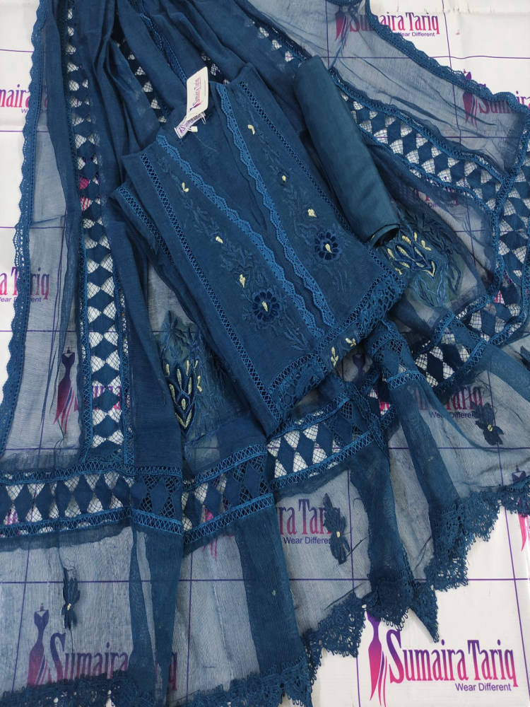 Be the first to review “VELVIBES – Peacock blue 3 Piece Semi Stitched Suit” Cancel reply